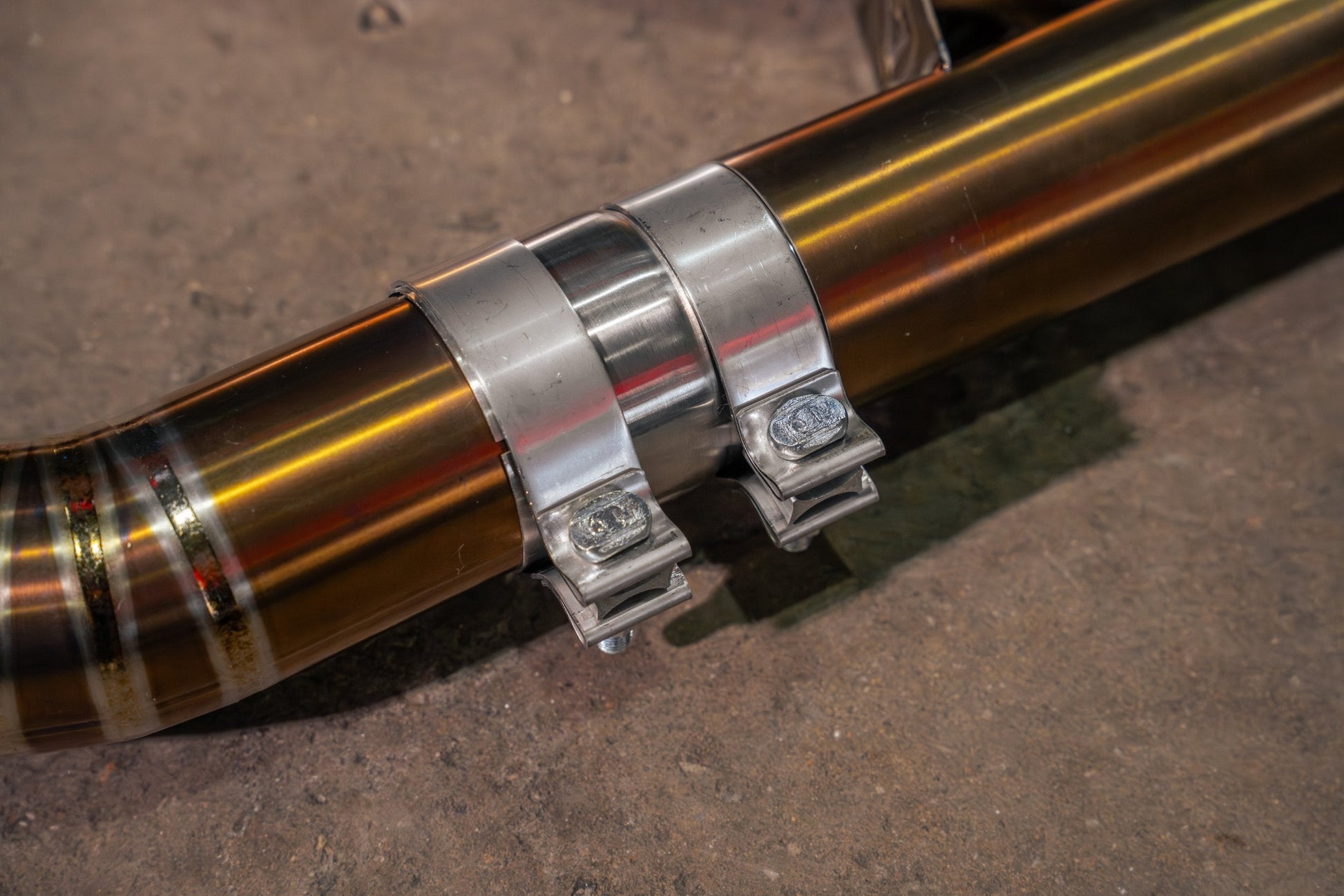 The V3 mid-pipe includes additional clearances at the downpipe connection and mid-section; small visible gaps prior to tightening are normal and by design.